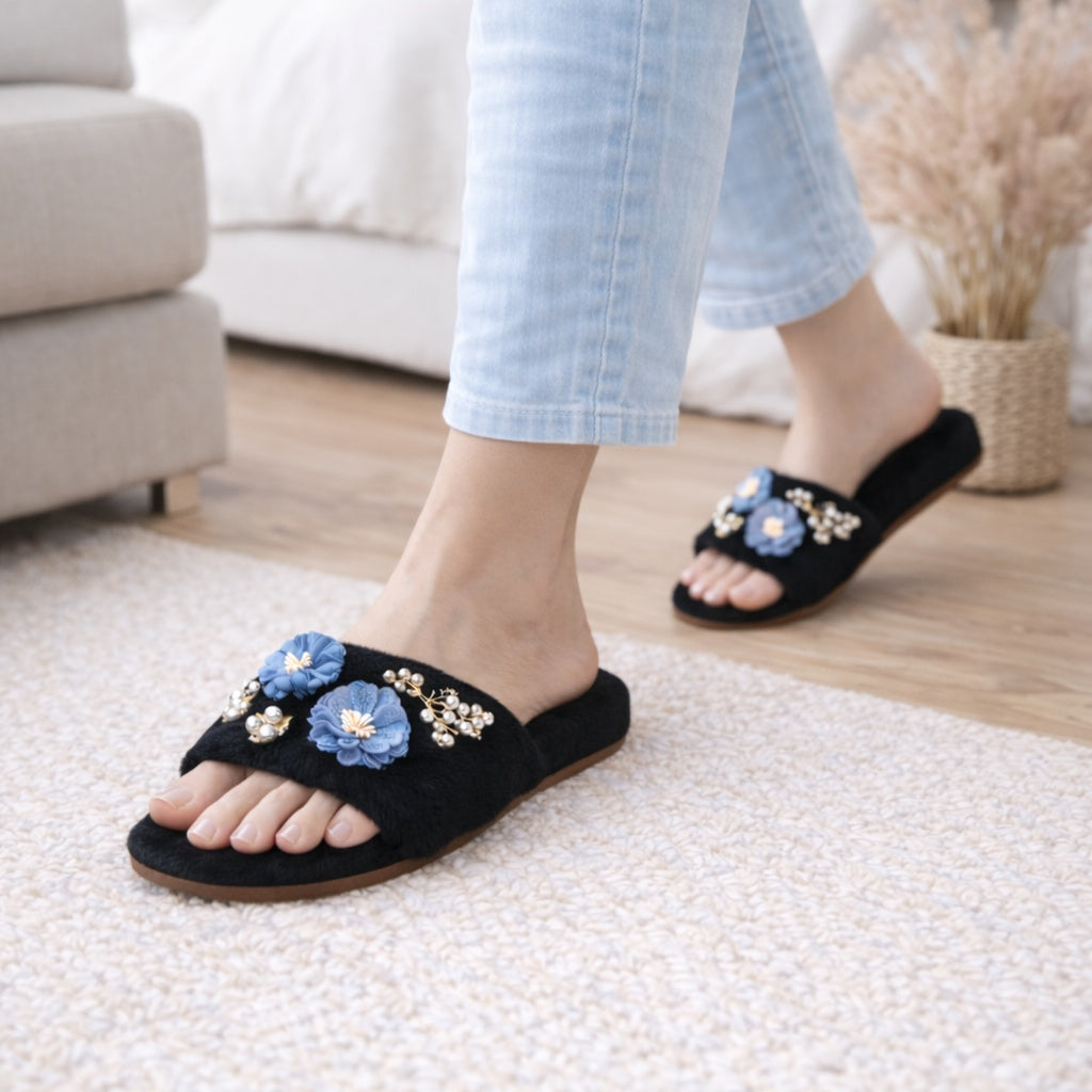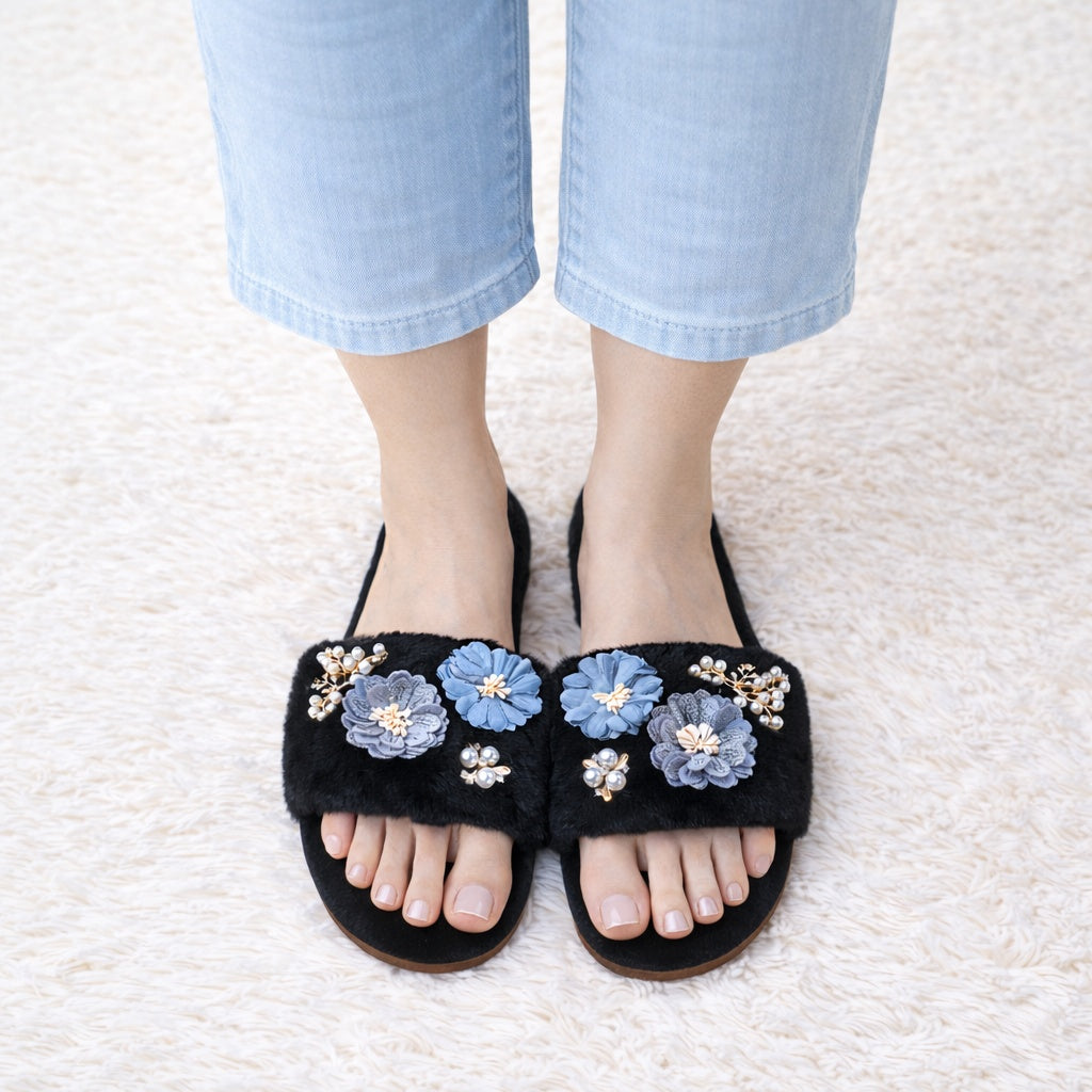 The Evienne Line is thoughtfully adorned with intricate floral appliqués, soft textures, and refined embellishments that add depth and charm to every step. Each pair is a celebration of craftsmanship — blending cozy comfort with artful design for a look that feels effortlessly elevated.
