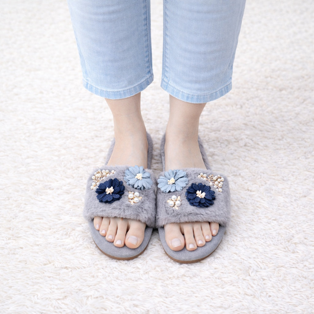 The Evienne Line is thoughtfully adorned with intricate floral appliqués, soft textures, and refined embellishments that add depth and charm to every step. Each pair is a celebration of craftsmanship — blending cozy comfort with artful design for a look that feels effortlessly elevated.