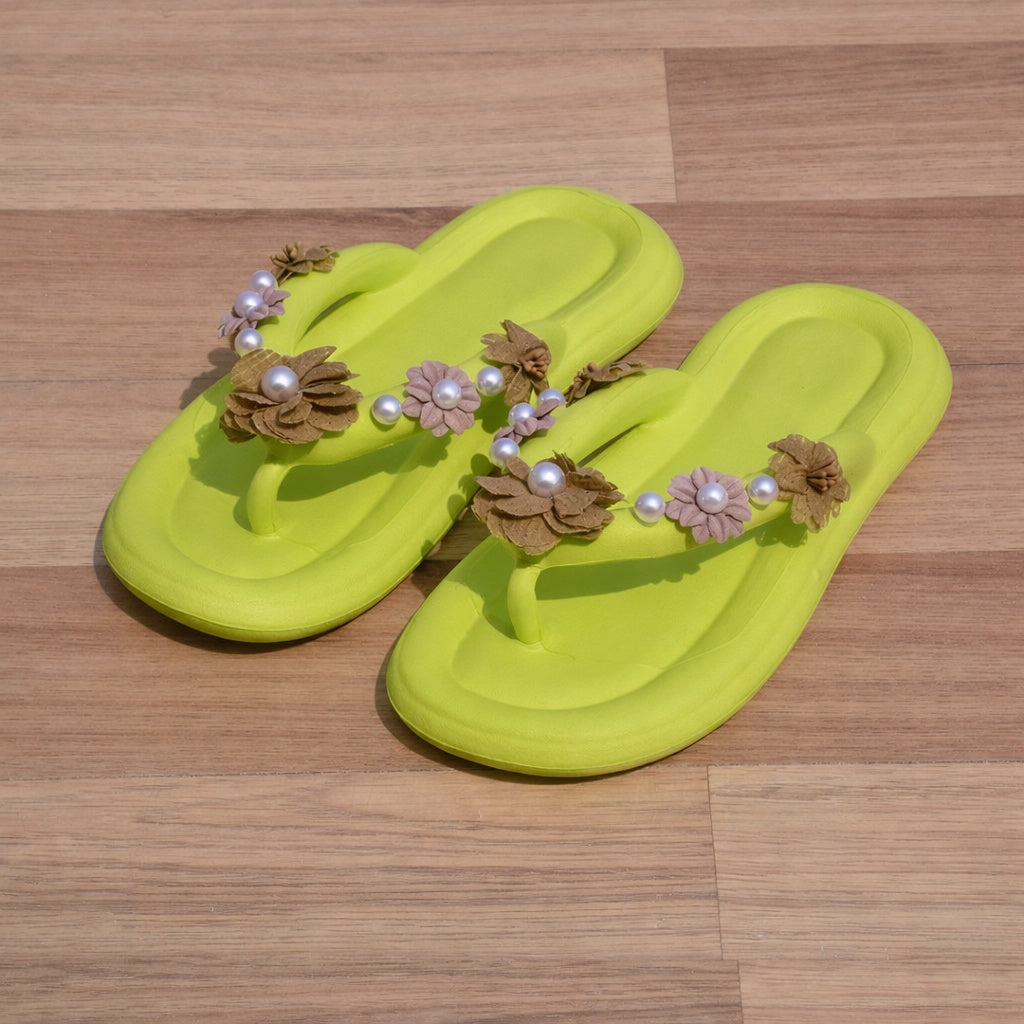 The Gem is the perfect blend of comfort and style. Available in black, pink, and lime, these eye-catching flip flops are adorned with complementing florals and an abundance of shimmering pearls, creating a look that’s both elegant and trendy. Whether you’re dressing up for a special occasion or adding a touch of sparkle to your everyday outfits, The Gem ensures you’ll shine and stand out wherever you go. Crafted for all-day wear, these flip flops provide the perfect balance of comfort and sophistication, making them a must-have addition to your wardrobe. Order yours today!